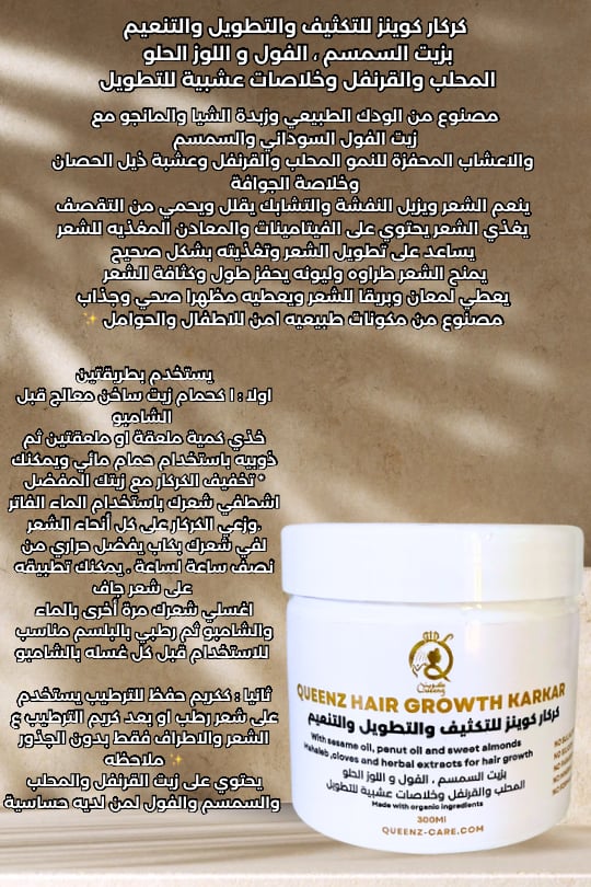 كركار كوينز للتكثيف والتطويل والتنعيم بزيت السمسم ، الفول و اللوز الحلو المحلب والقرنفل وخلاصات عشبية للتطويل 300ml