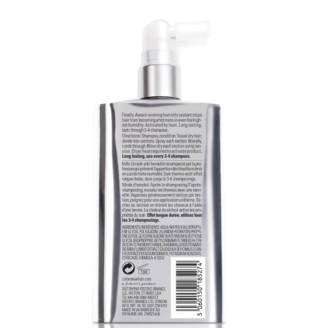 كولور واو بخاخ حمايه و عازل للشعر لحماية الشعر المسامي يغلق كل خصلة بطبقه مانعة للماء غير مرئية مثالية لمكافحة التجعد إذا قمت ب صبغه شعرك فمن المحتمل أن يكون شعرك أكثر مسامية وعرضة للرطوبة مما يعني المزيد من خطر النفشه نقدم بخاخ Color Wow's Dream Coat Supernatural Spray، الذي "يتقلص" كل شعره ب عازل مانعة للماء غير مرئية لمنع التجعد والطيران. ينشط حراريا، تستمر تأثيرات هذا الرذاذ حتى ثلاث إلى أربع غسلات وتعمل على ضغط خيوط الشعر وتشديدها وختمها للحصول على لمسة نهائية أنيقة وسلسة وحريرية للغاية بشكل خارق للطبيعة. على عكس أمصال "حارس الرطوبة" يحتوي سيليكون